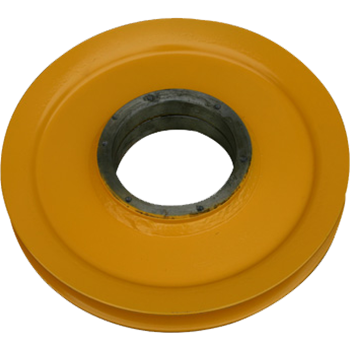 滑輪幅板采用幅板壓制成型,滑輪兩支點受力,與輪轂成三角形,加強滑輪的穩(wěn)定性,此結(jié)構(gòu)新穎,為我司獨有滑輪生產(chǎn)工藝,相同受力情況下,可減少滑輪重量,R槽為車刀成型,因此與輪轂軸的同軸度更高,R槽跳動小,性價比極高。